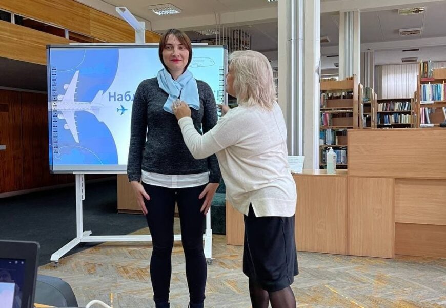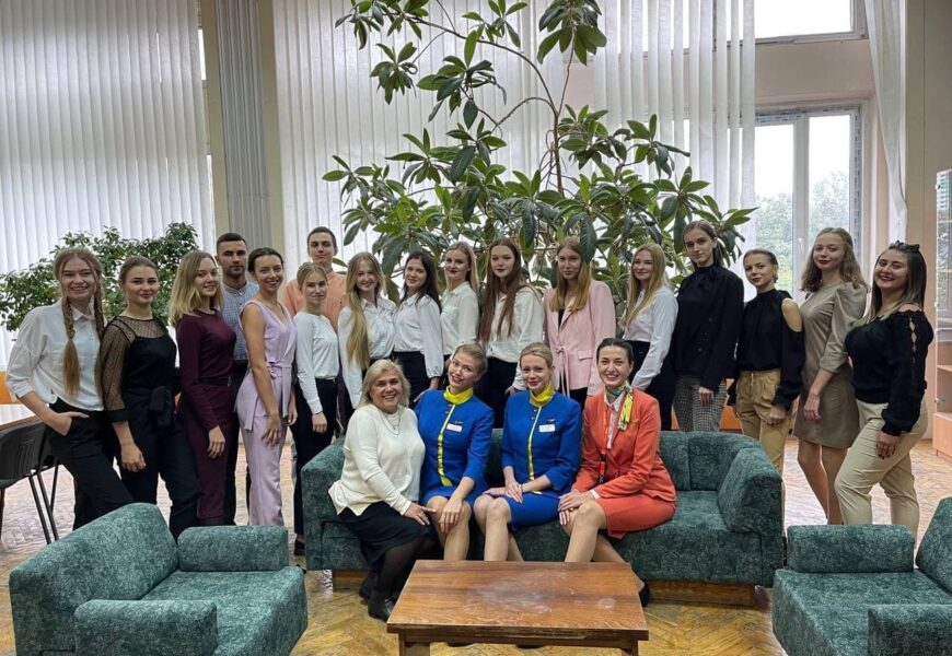 Гостями заходу стали бортпровідниці компанії МАУ Лянна Наталія Володимирівна та Станіславська Світлана Андріївна, а також представниця авіакомпанії Sky-up, випускниця НАУ Осипчук Яна Едуардівна. Наші гості поділилися своїм власним досвідом, а також з радістю відповіли на запитання студентів. А як у всіх блищали очі!! А скільки радості від такого спілкування! Справжні стюардеси були навіть здивовані таким щирим та теплим прийомом. Квіти з вдячністю за зустріч, шарфи на згадку, посмішки та фотографії, а ще велика наснага бути причетними до такої омріяної справи – роботи для людей, де за вікном небо!