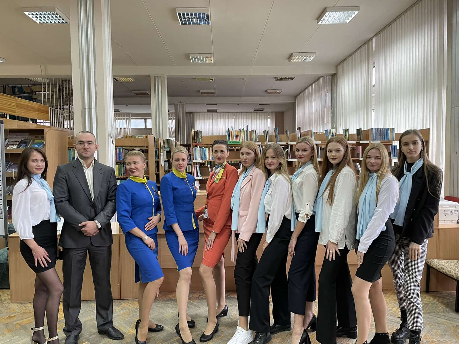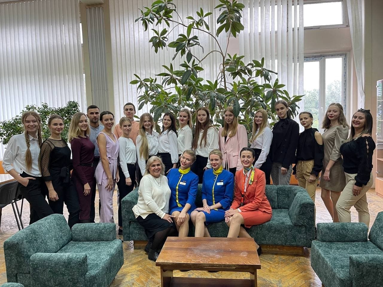 Гостями заходу стали бортпровідниці компанії МАУ Лянна Наталія Володимирівна та Станіславська Світлана Андріївна, а також представниця авіакомпанії Sky-up, випускниця НАУ Осипчук Яна Едуардівна. Наші гості поділилися своїм власним досвідом, а також з радістю відповіли на запитання студентів. А як у всіх блищали очі!! А скільки радості від такого спілкування! Справжні стюардеси були навіть здивовані таким щирим та теплим прийомом. Квіти з вдячністю за зустріч, шарфи на згадку, посмішки та фотографії, а ще велика наснага бути причетними до такої омріяної справи – роботи для людей, де за вікном небо!