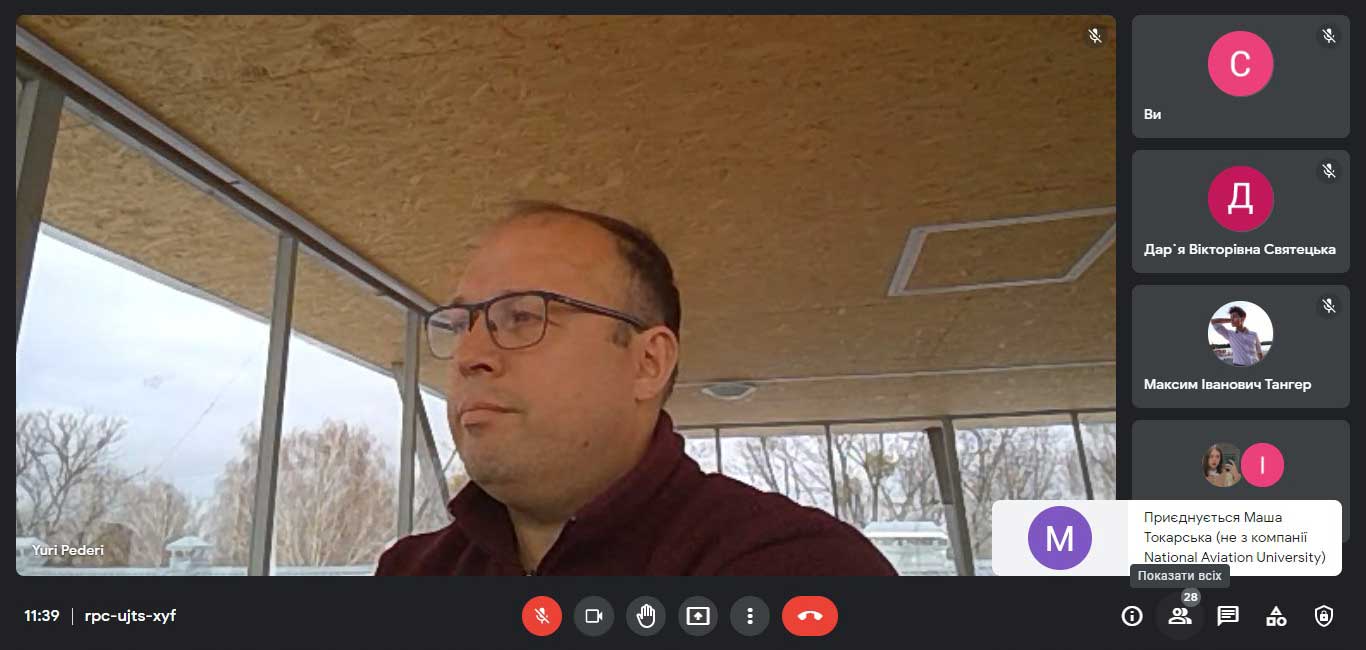 17 листопада 2021 року кафедрою ОАРП було проведено вебінар-зустріч з керівником організації, засновником стартапу “Аеродрон” Юрієм Педерієм.