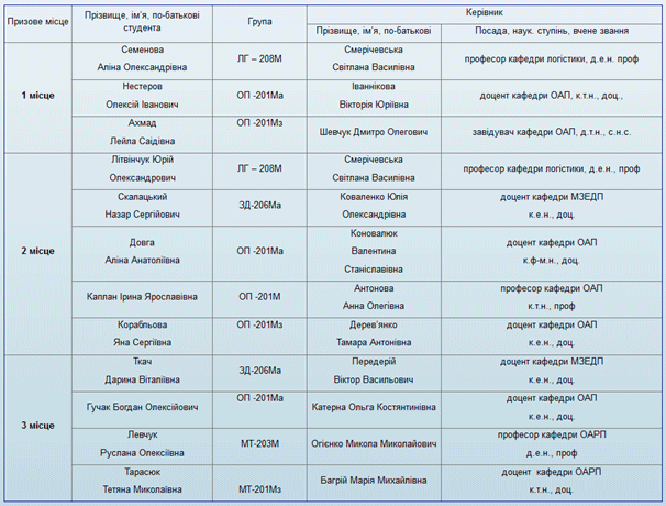 Щиро вітаємо студентів-переможців та їхніх наукових керівників!