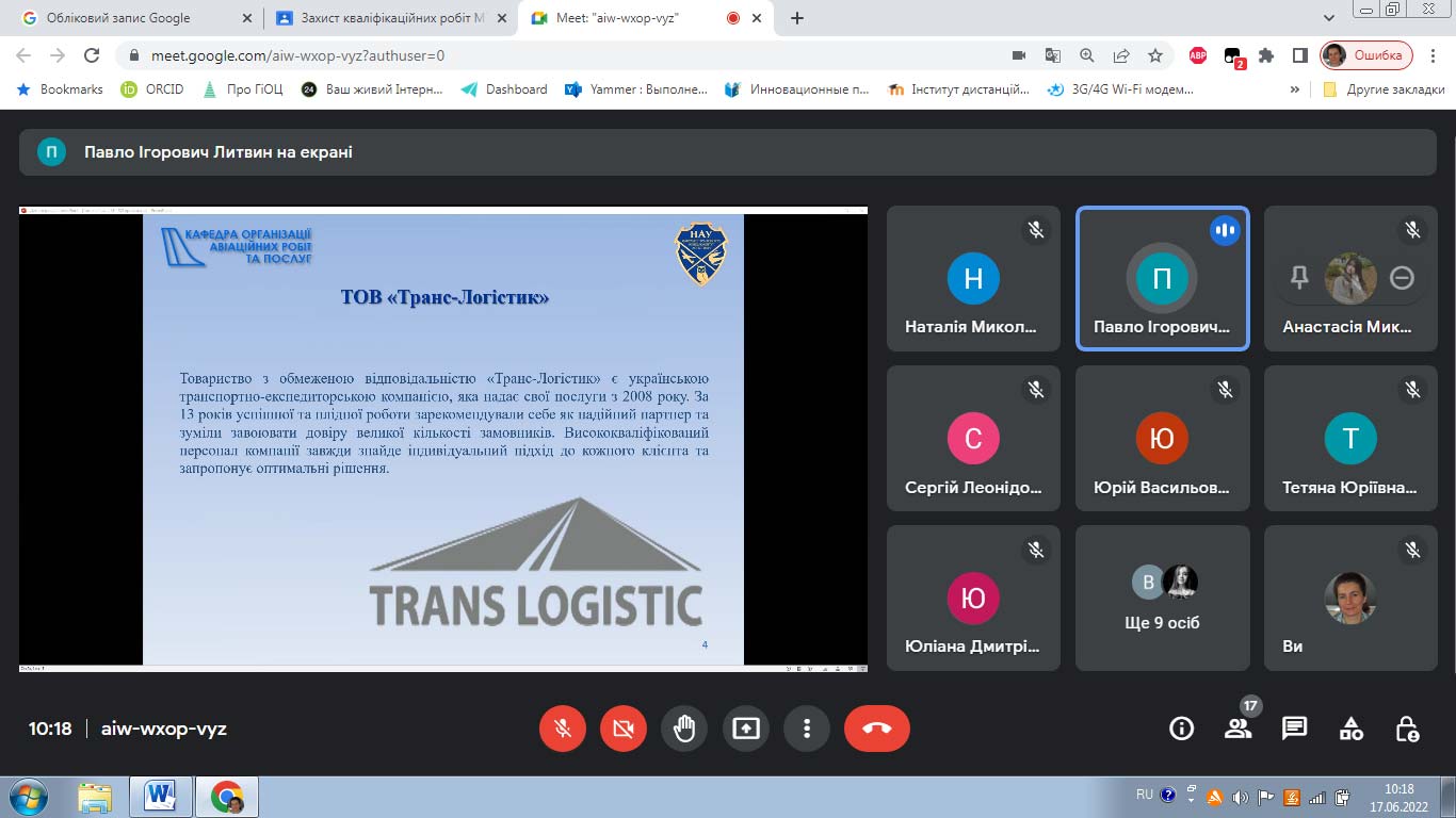 14-18 червня 2022 року на кафедрі організації авіаційних робіт та послуг було проведено захист кваліфікаційних робіт здобувачів вищої освіти освітнього ступеня «Бакалавр», спеціальності 275 «Транспортні технології (на повітряному транспорті)» освітньо-професійних програм «Організація авіаційних робіт і послуг» та «Мультимодальний транспорт і логістика». Захист кваліфікаційних робіт – це завершальний крок в навчанні.
