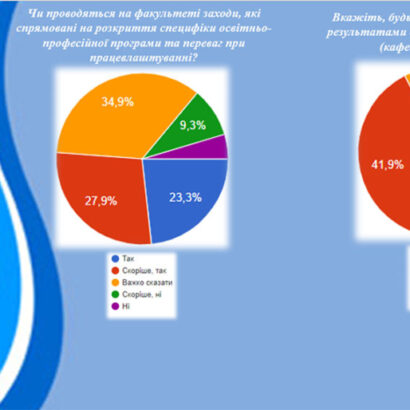 В середині листопада 2022 року кафедрою було проведене анкетування роботодавців щодо якості освіти на ОПП «Бортовий супровід авіаційних пасажирських перевезень» ОС «Бакалавр» в рамках щорічного перегляду освітніх програм. В опитуванні взяли участь 5 компаній-партнерів кафедри: ТОВ «МАУ» ТОВ…