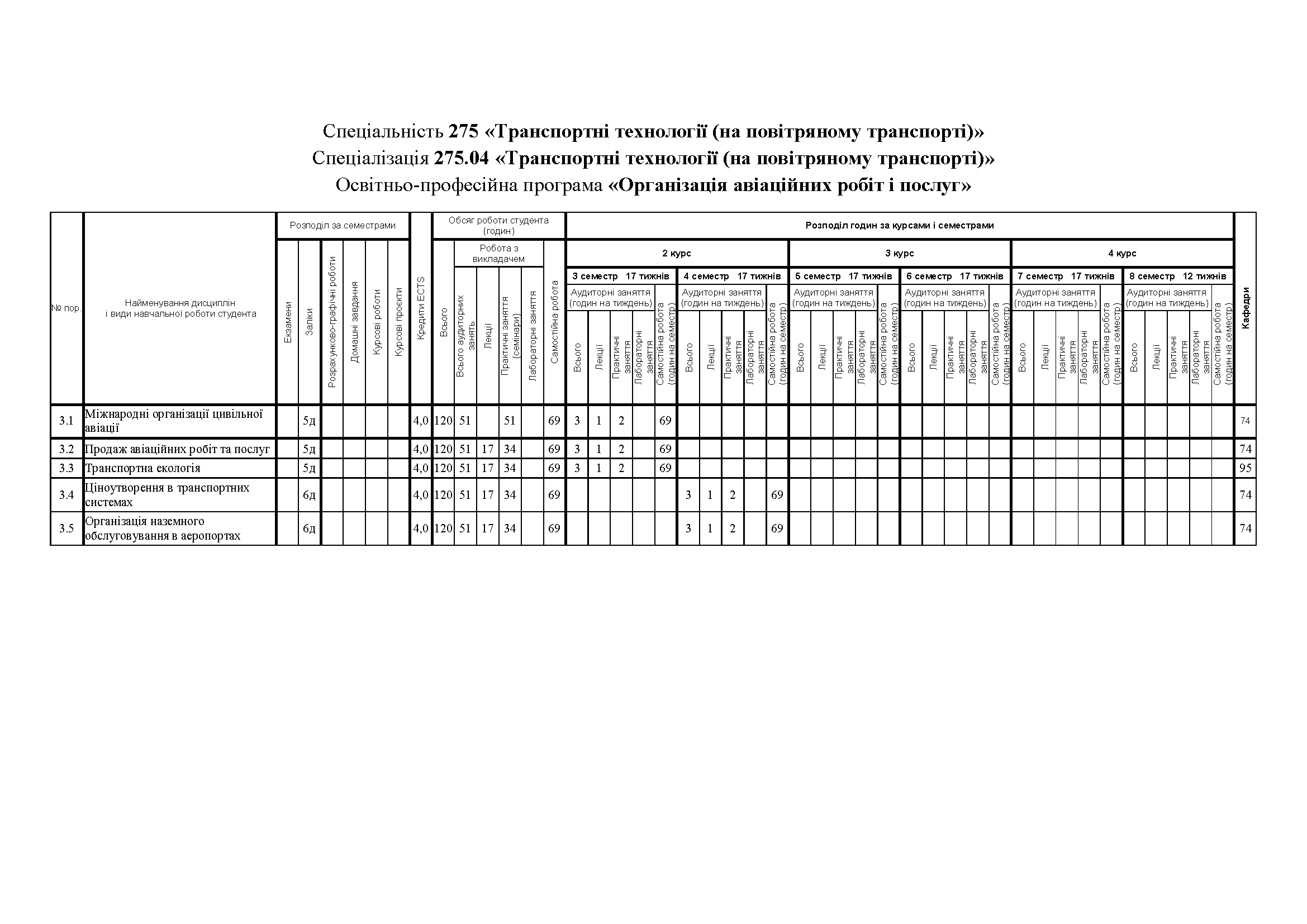 На підставі Положення про формування індивідуальної освітньої траєкторії здобувача вищої освіти в Національному авіаційному університеті, затвердженого наказом ректора від 15.03.2021 № 160/од, розпорядження проректора з навчальної роботи від 03.11.2022 № 072/роз «Про обрання вибіркових дисциплін здобувачами вищої освіти освітнього ступеня бакалавра на 2023-2024 навчальний рік», результатів обрання здобувачами вищої освіти освітнього ступеня бакалавра вибіркових дисциплін на 3, 4, 5, 6, 7 та 8 семестри 2023-2024 навчального року, кафедрою організацією авіаційних робіт та послуг ФТМЛ затверджено перелік обраних здобувачами вищої освіти вибіркових дисциплін.