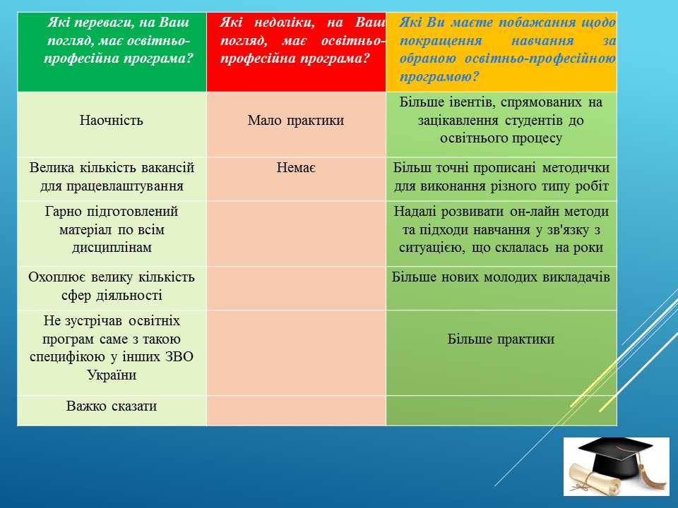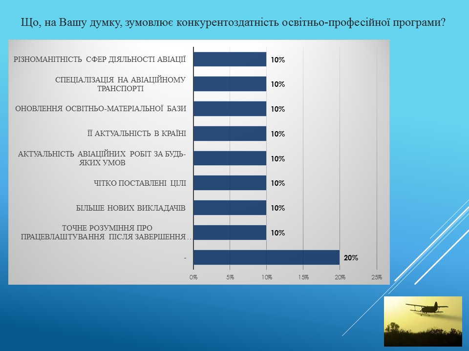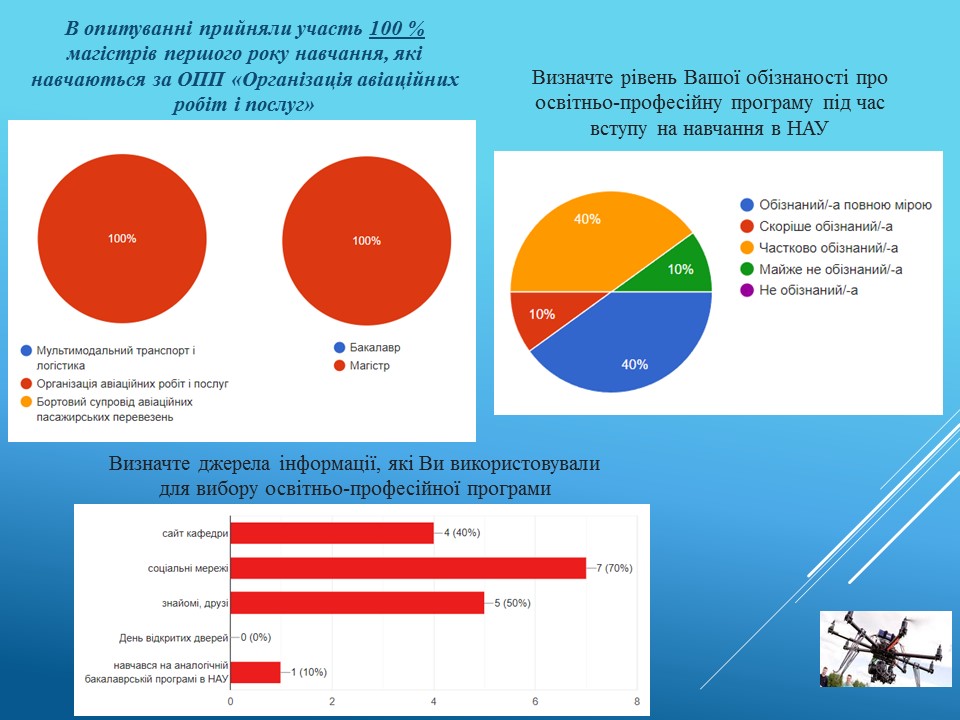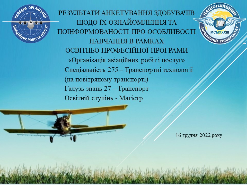 Результати анкетування здобувачів в питанні їх ознайомлення про особливості навчання в рамках освітньо-професійної програми «Організація авіаційних робіт і послуг»