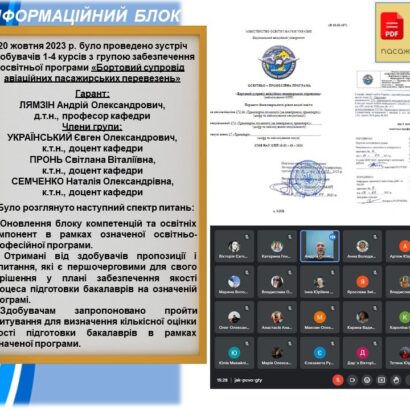 13 жовтня 2023 року відбулось чергове засідання наукового гуртка «Інфраструктура мультимодальних перевезень» під керівництвом доцента кафедри організації авіаційних робіт і послуг Лариси Докієнко, яке було присвячене аналізу тенденцій та перспектив розвитку авіатранспортних послуг в Україні та світі (у…