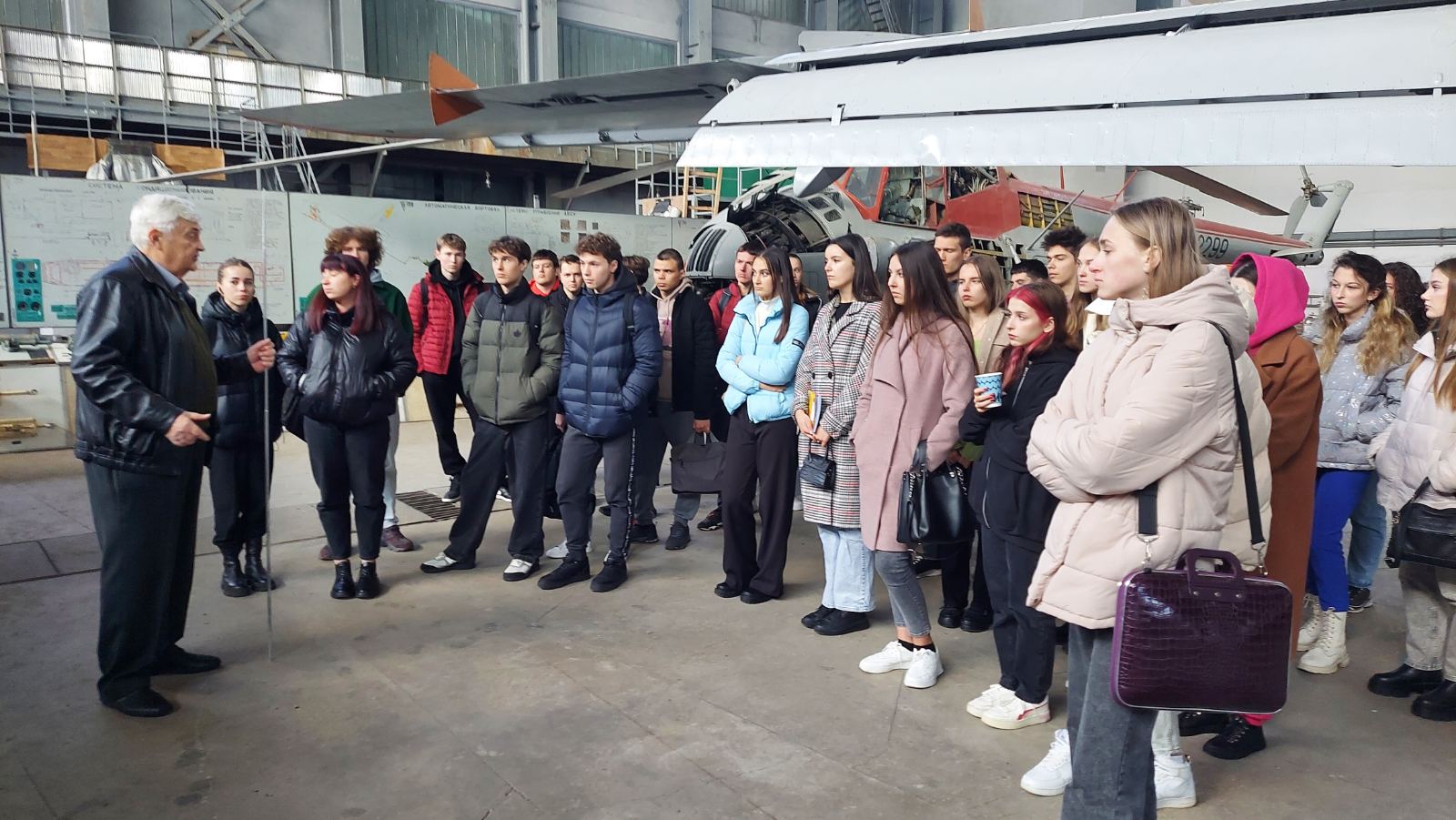 17 жовтня 2023 року здобувачі першого курсу групи МТ-104 Ба в рамках вивчення дисципліни «Вступ до фаху» та здобувачі другого курсу групи БС-205 Б в рамках вивчення дисципліни «Сервісна діяльність в авіаційній галузі» відвідали ангар НАУ, де мали змогу послухати змістовну, цікаву і насичену фактами лекцію-екскурсію доцента кафедри організації авіаційних робіт та послуг Трюхана Олега Миколайовича.