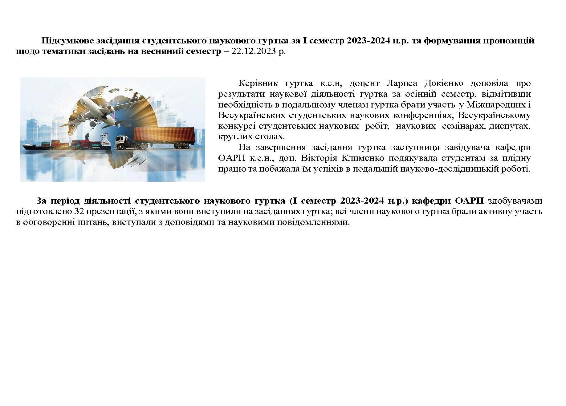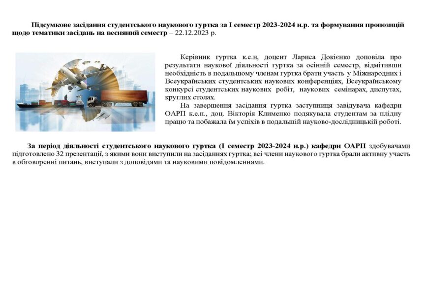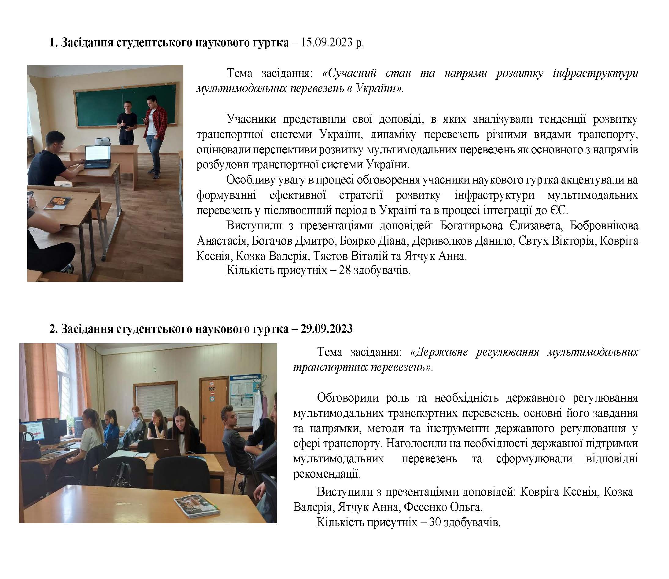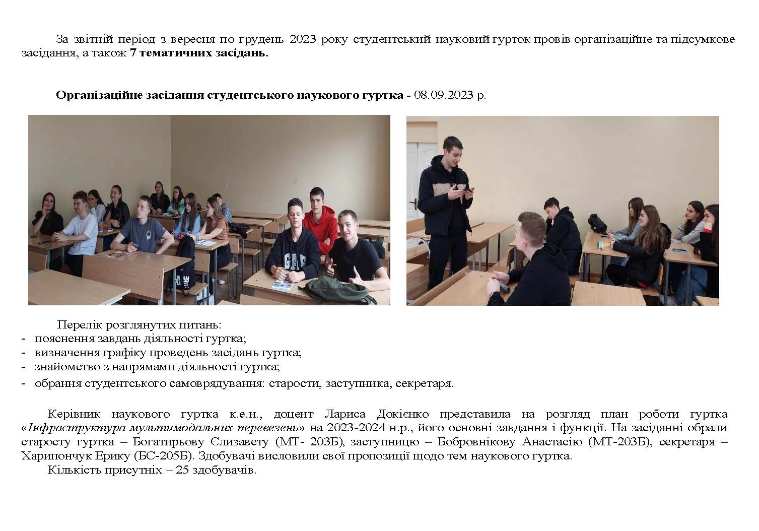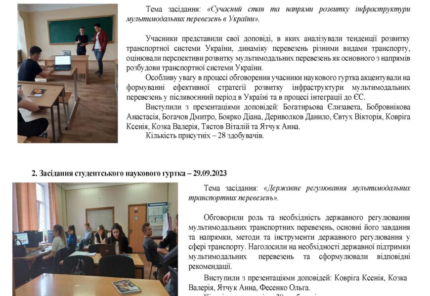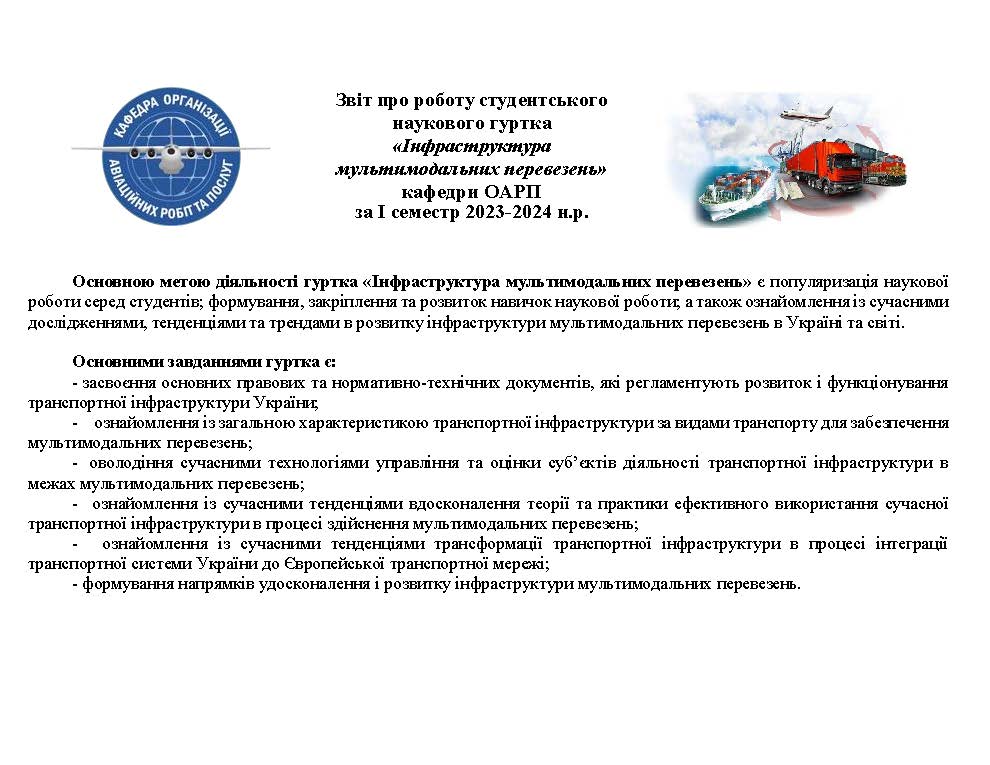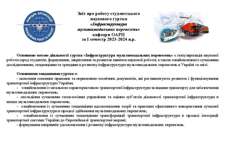 Звіт про роботу студентського наукового гуртка «Інфраструктура мультимодальних перевезень» за І семестр 2023-2024 н.р