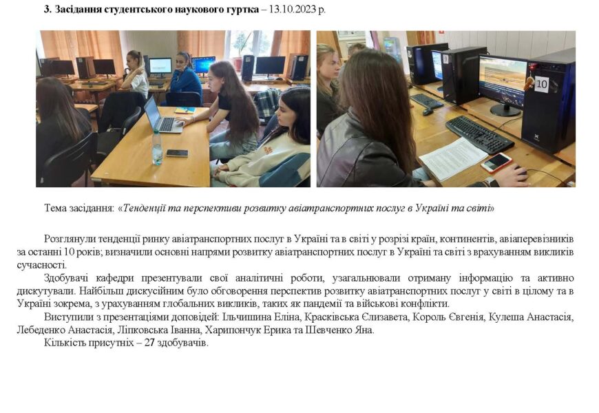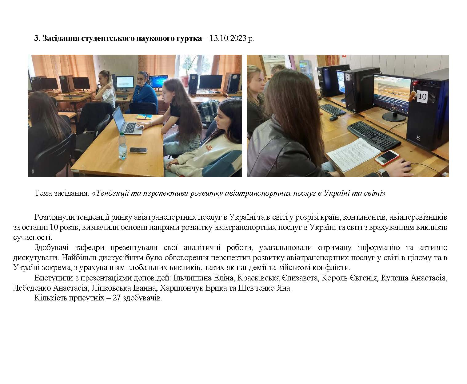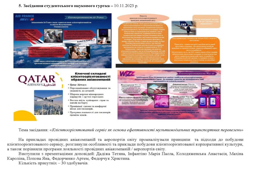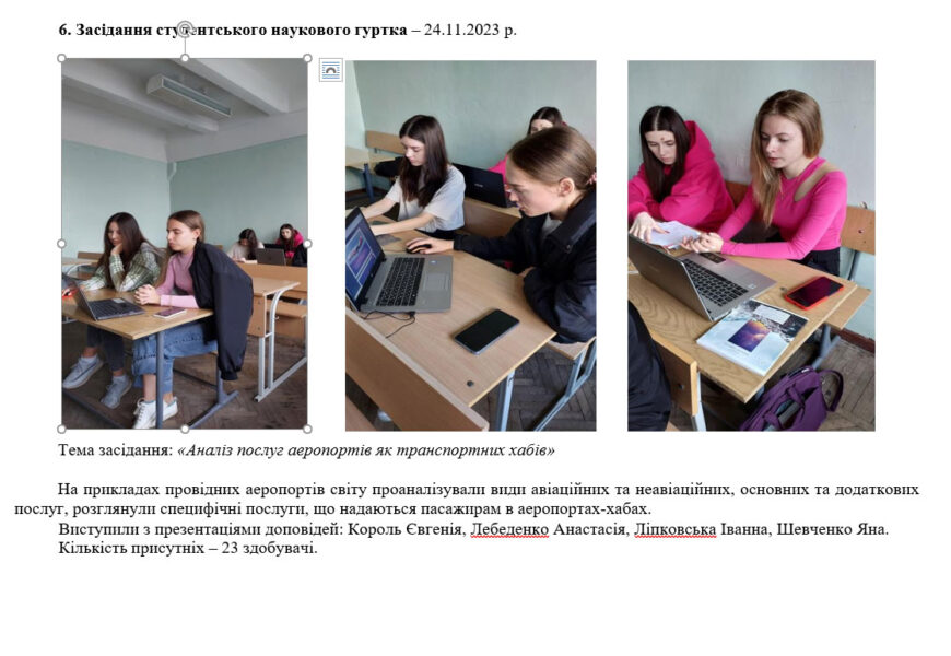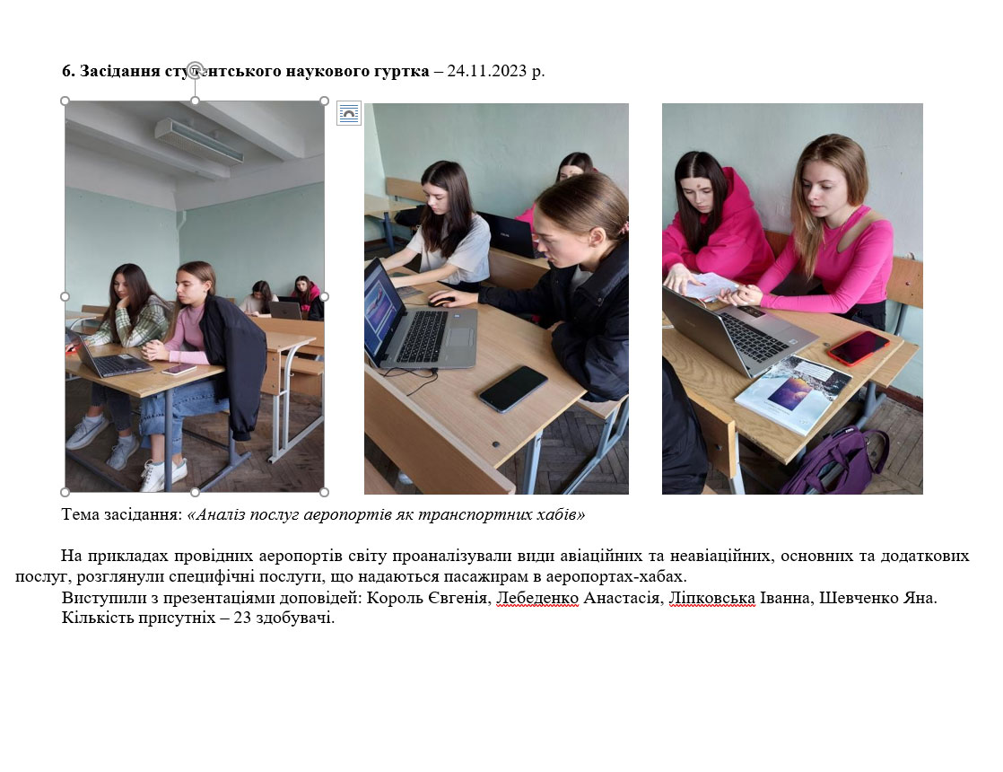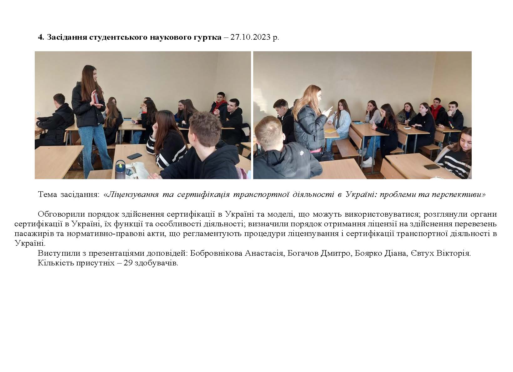Звіт про роботу студентського наукового гуртка «Інфраструктура мультимодальних перевезень» за І семестр 2023-2024 н.р