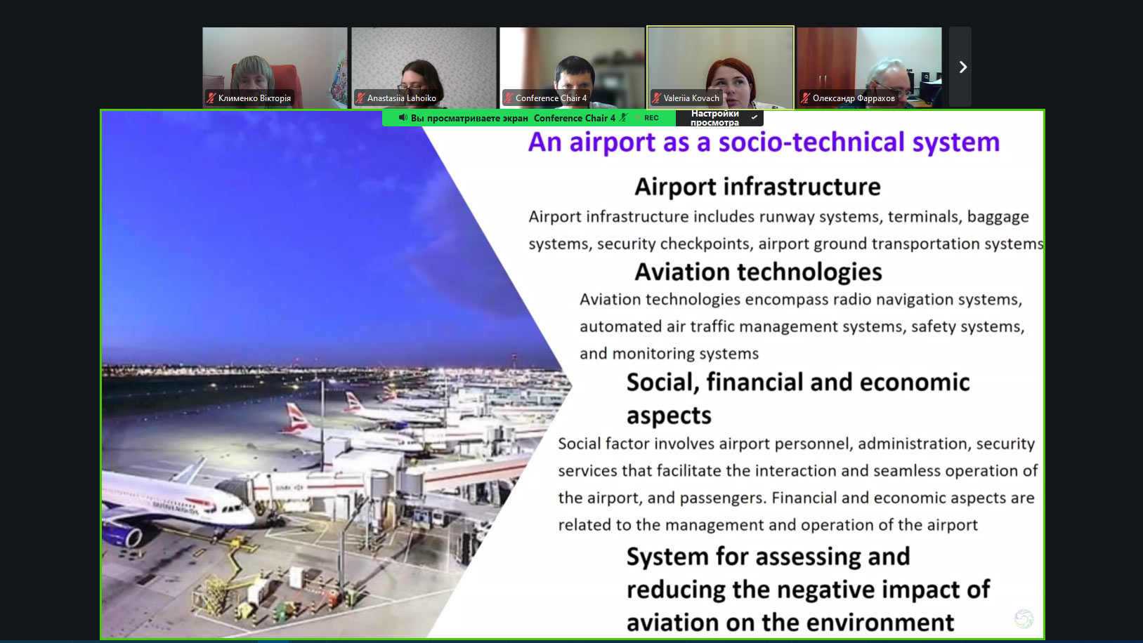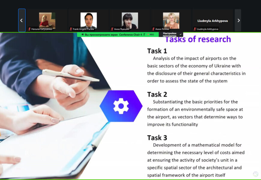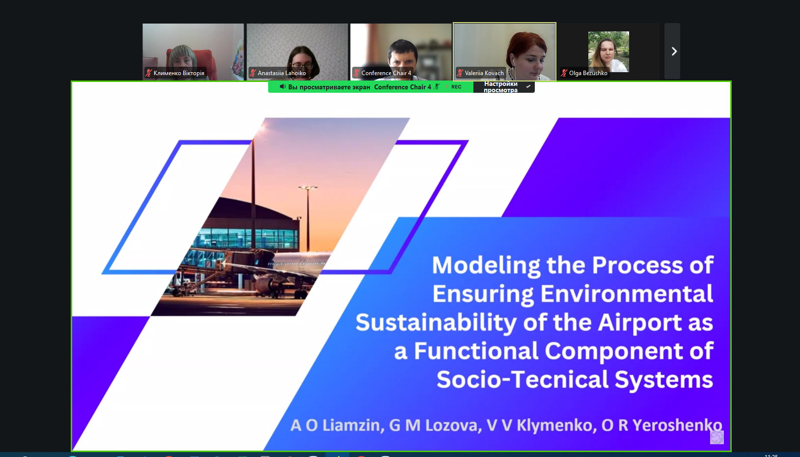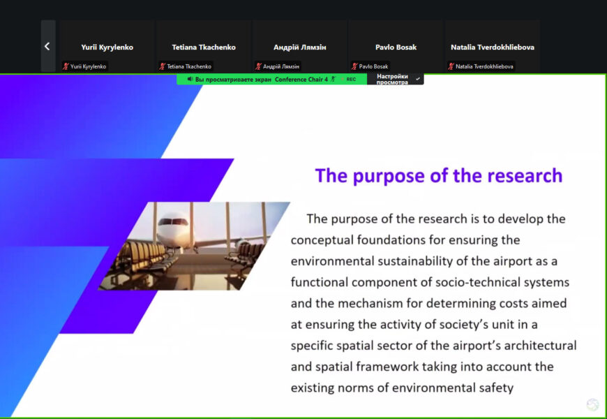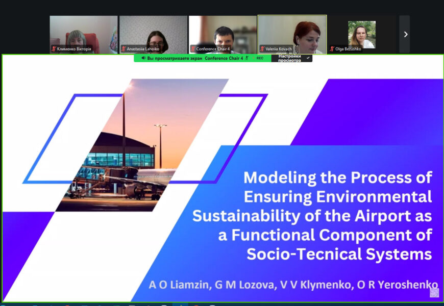 На конференції було представлено доповідь «Моделювання процесу забезпечення екологічної стійкості аеропорту як функціональної складової соціо-технічних систем» (Лямзін А.О., Лозова Г.М., Клименко В.В., Єрошенко О.Р.)
