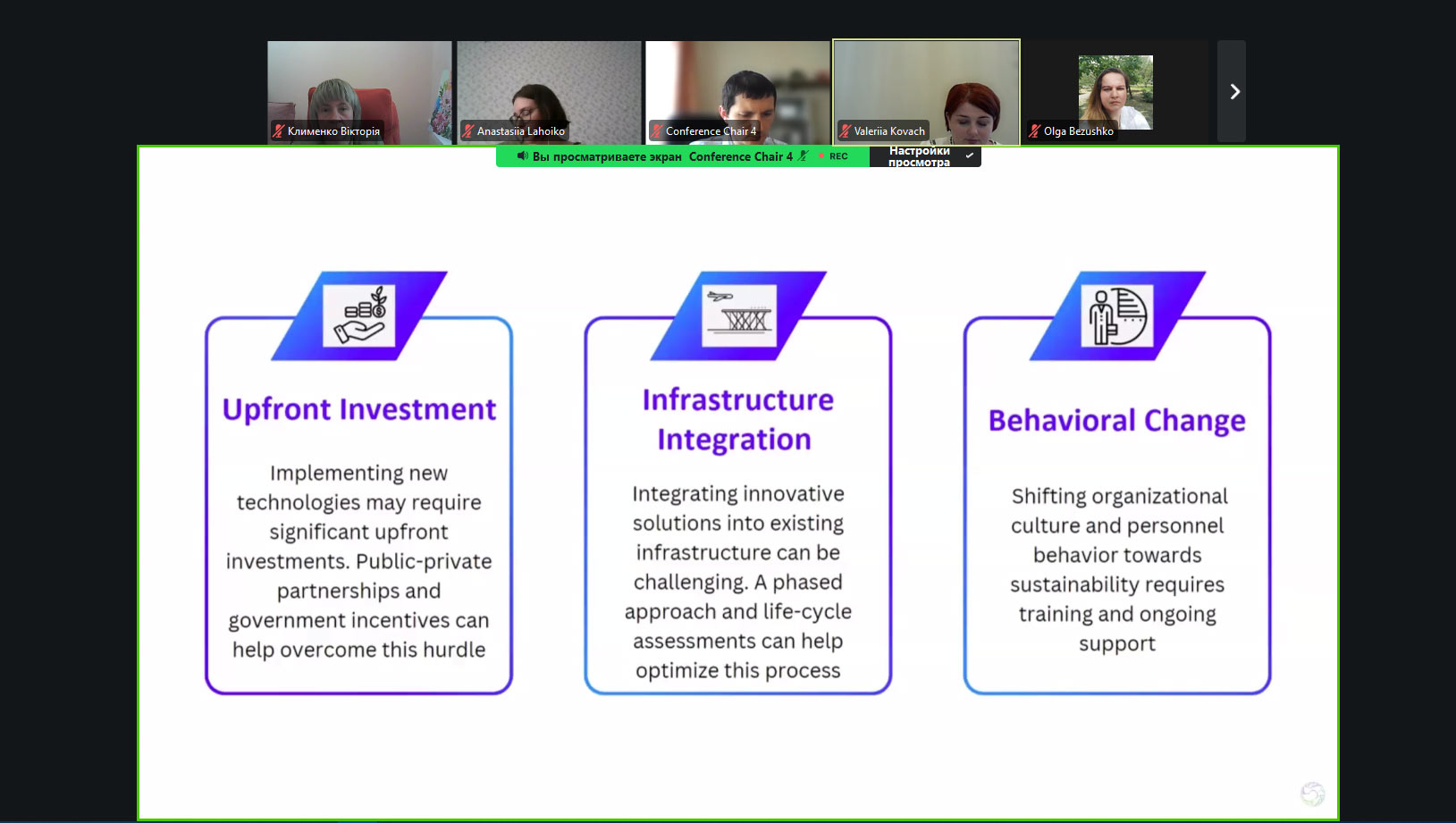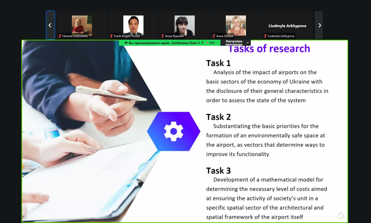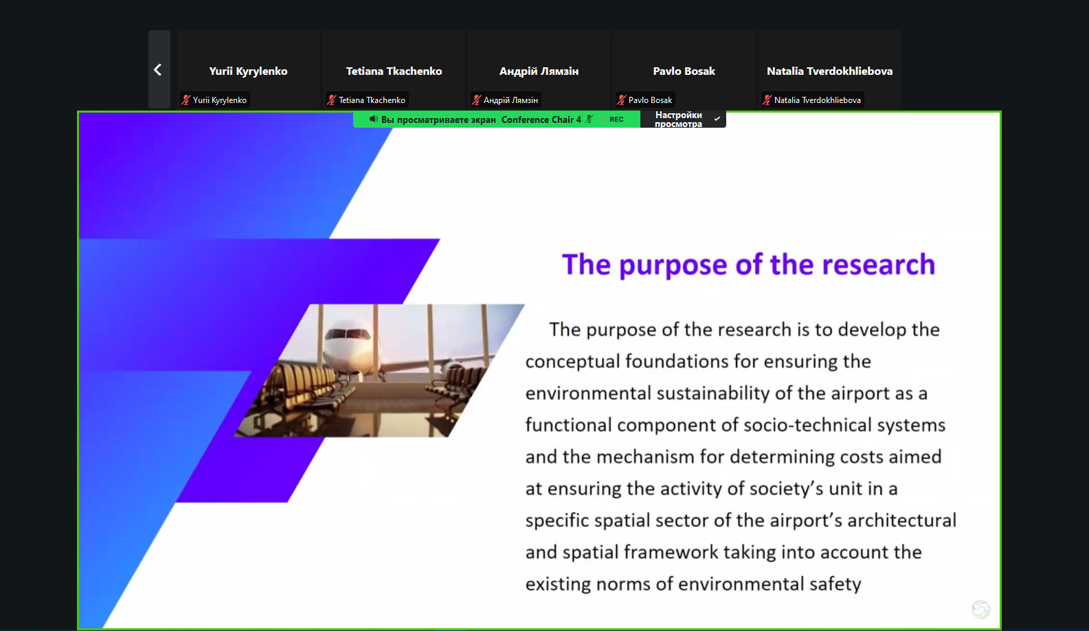 На конференції було представлено доповідь «Моделювання процесу забезпечення екологічної стійкості аеропорту як функціональної складової соціо-технічних систем» (Лямзін А.О., Лозова Г.М., Клименко В.В., Єрошенко О.Р.)