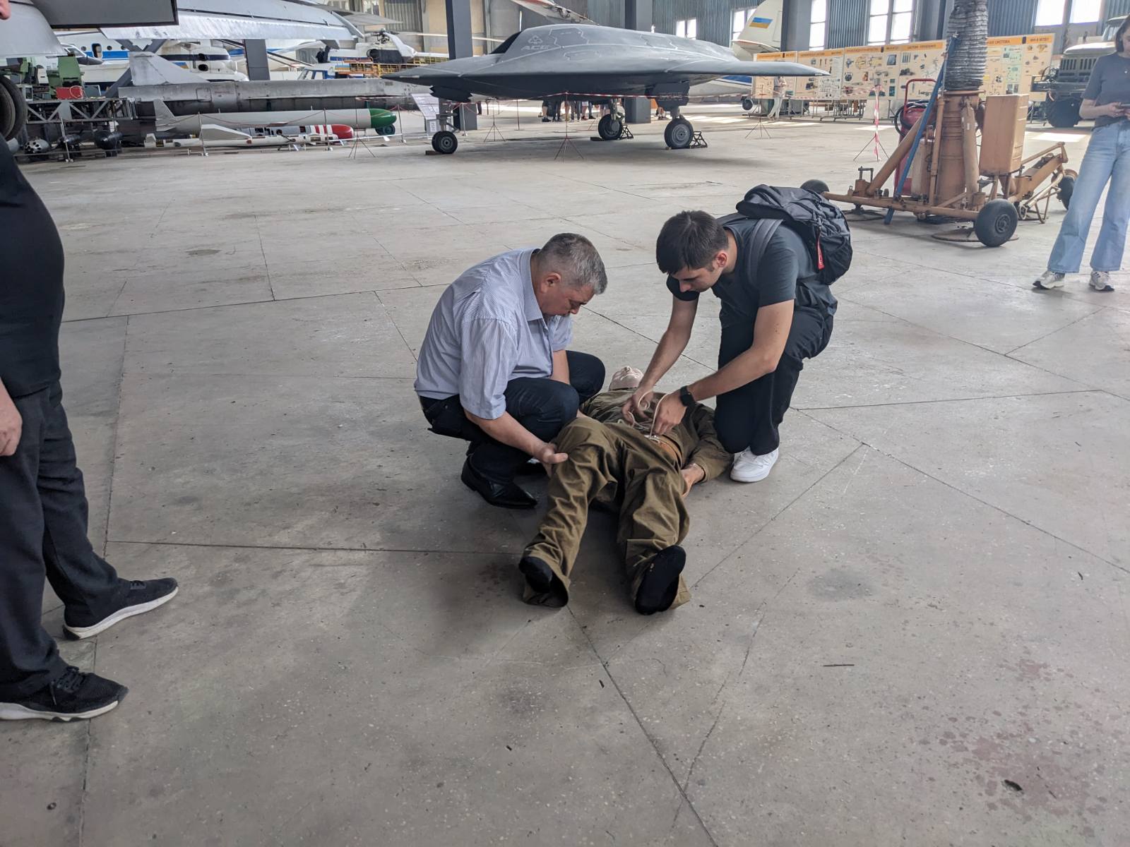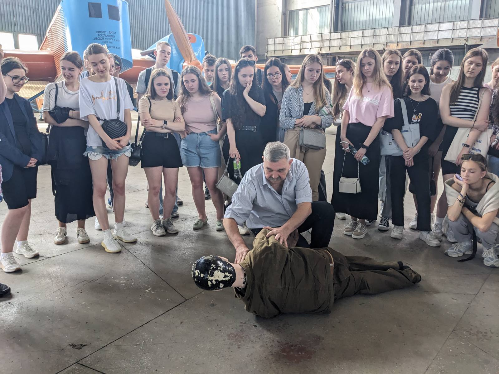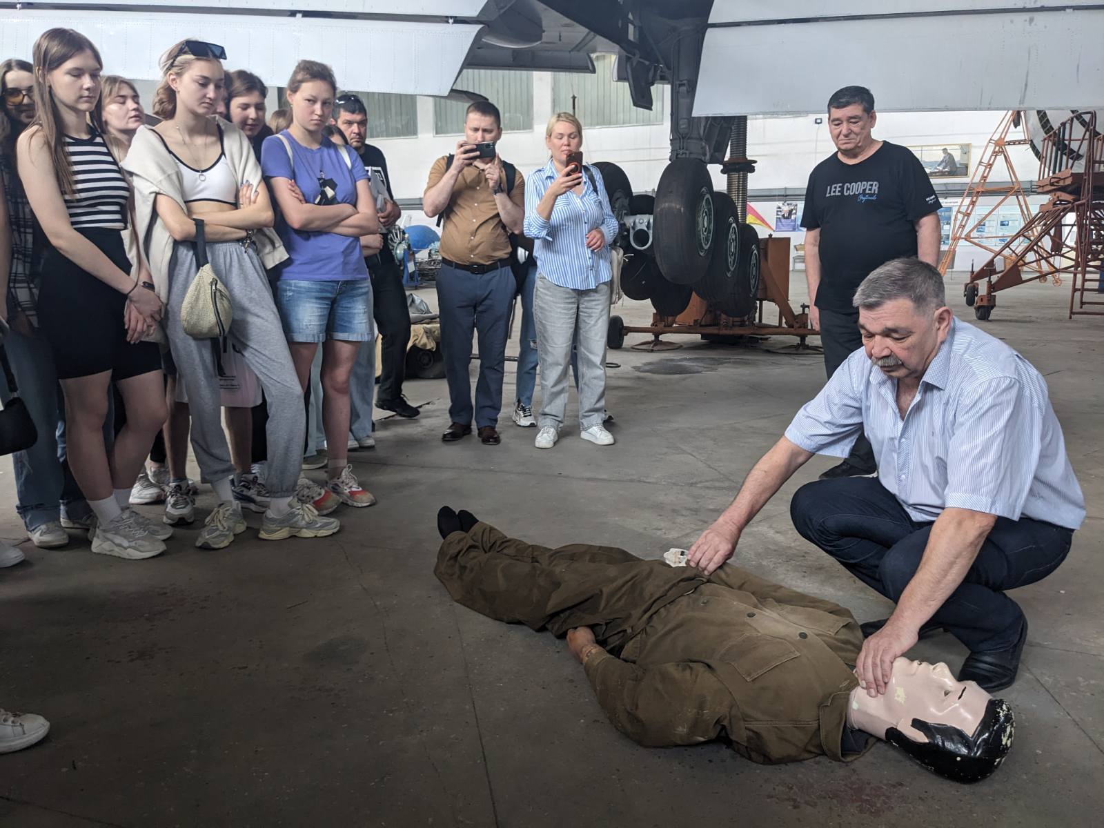 04 червня 2024 року здобувачі 2го та 3го курсів кафедри організації авіаційних робіт та послуг ОПП «Бортовий супровід авіаційних пасажирських перевезень» та «Мультимодальний транспорт і логістика» в рамках організаційно-технологічної практики пройшли практичний тренінг в ангарі НАУ з професійним інструктором-медиком – кандидатом медичних наук, професором Халмурадовим Б.Д. щодо процедури надання невідкладної медичної допомоги на борту ПС у випадку екстреної ситуації.