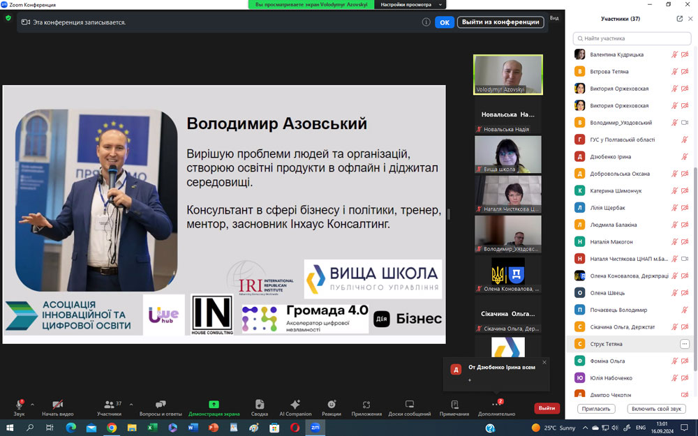 В рамках марафону піднімалися питання кібербезпеки зі спікером Володимиром Азовським, директором та засновником ТОВ “Інхаус Консалтинг”, тренером Освітнього Хабу м. Києва; обговорювалися інструменти впровадження європейської моделі громадянської (політичної) освіти за навчальною програмою “Європейський Союз. Відносини України-ЄС”. Поширення демократичних цінностей та розвиток громадянської освіти сприятиме подальшому вдосконаленню освітніх підходів у нашій країні.