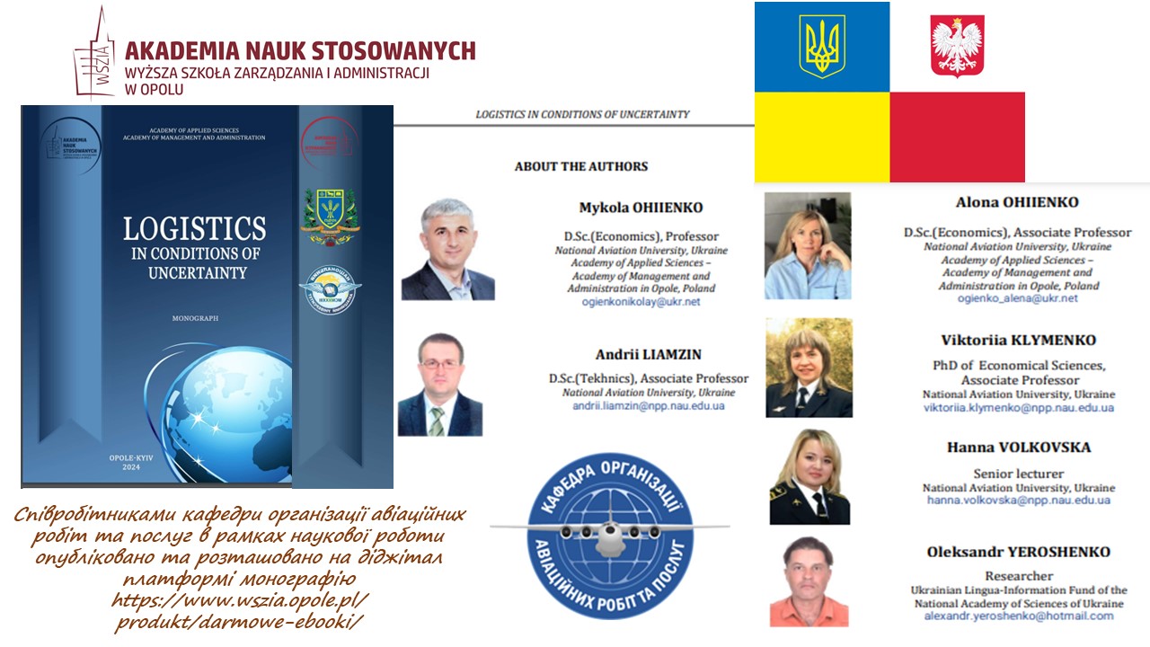 Співробітниками кафедри організації авіаційних робіт та послуг в рамках наукової роботи опубліковано та розташовано на діджітал платформі монографію