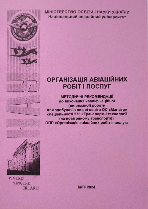 Методичні рекомендації до виконання кваліфікаційної (дипломної) роботи для здобувачів вищої освіти ОС «Магістр» спеціальності 275 «Транспортні технології (на повітряному транспорті)» ОПП «Організація авіаційних робіт і послуг».