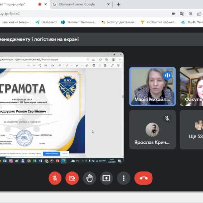 10 січня 2023 року відбулася оnline зустріч, присвячена завершенню навчання на факультеті транспорту, менеджменту і логістики Національного авіаційного університету. Завершили навчання на освітньому ступені «Магістр» 13 здобувачів вищої освіти денної форми навчання, які навчалися за спеціальністю 275 «Транспортні технології (на…